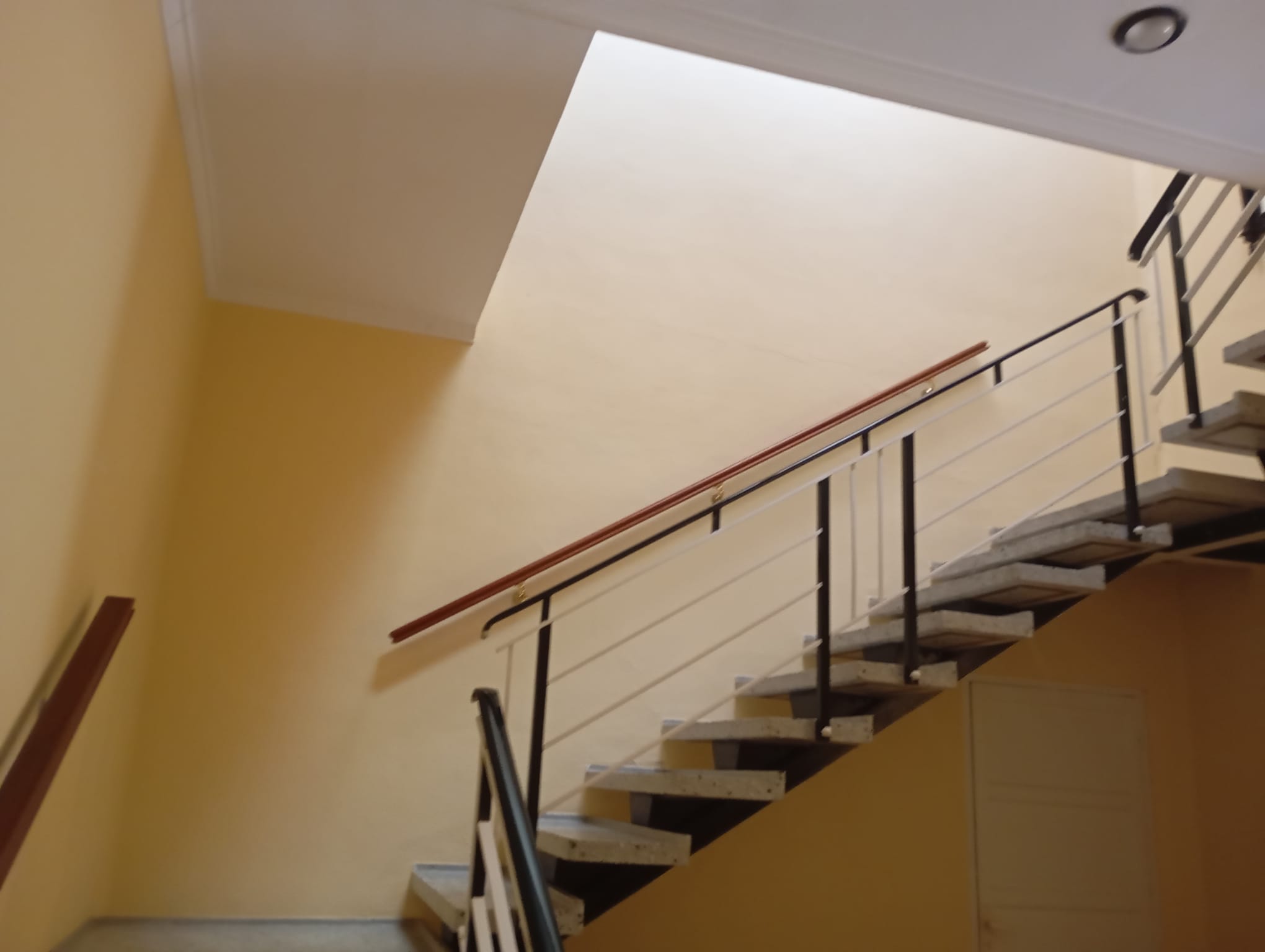 La escalera de estilo actual y sobre la que hay un par de tragaluces también de estilo