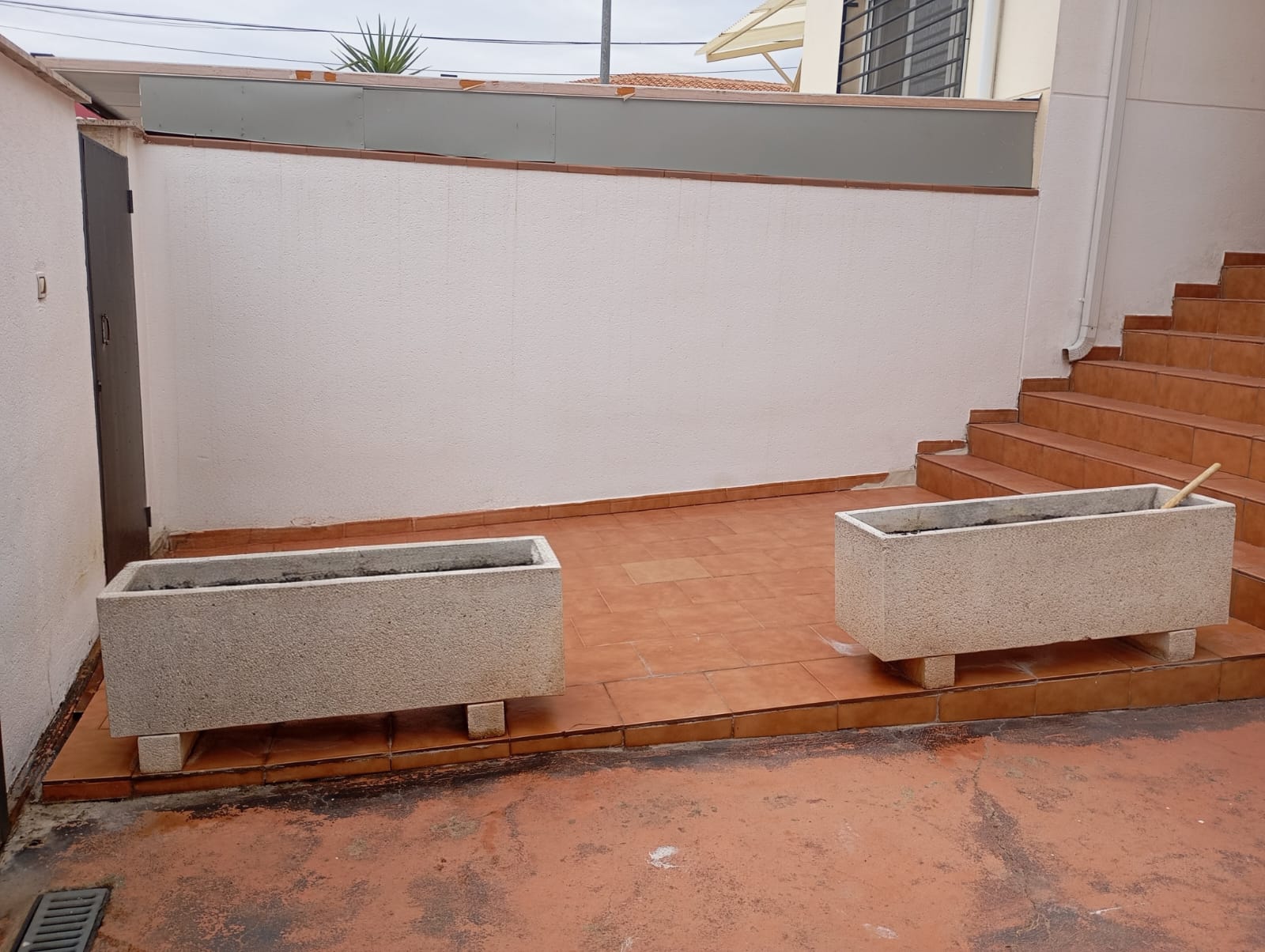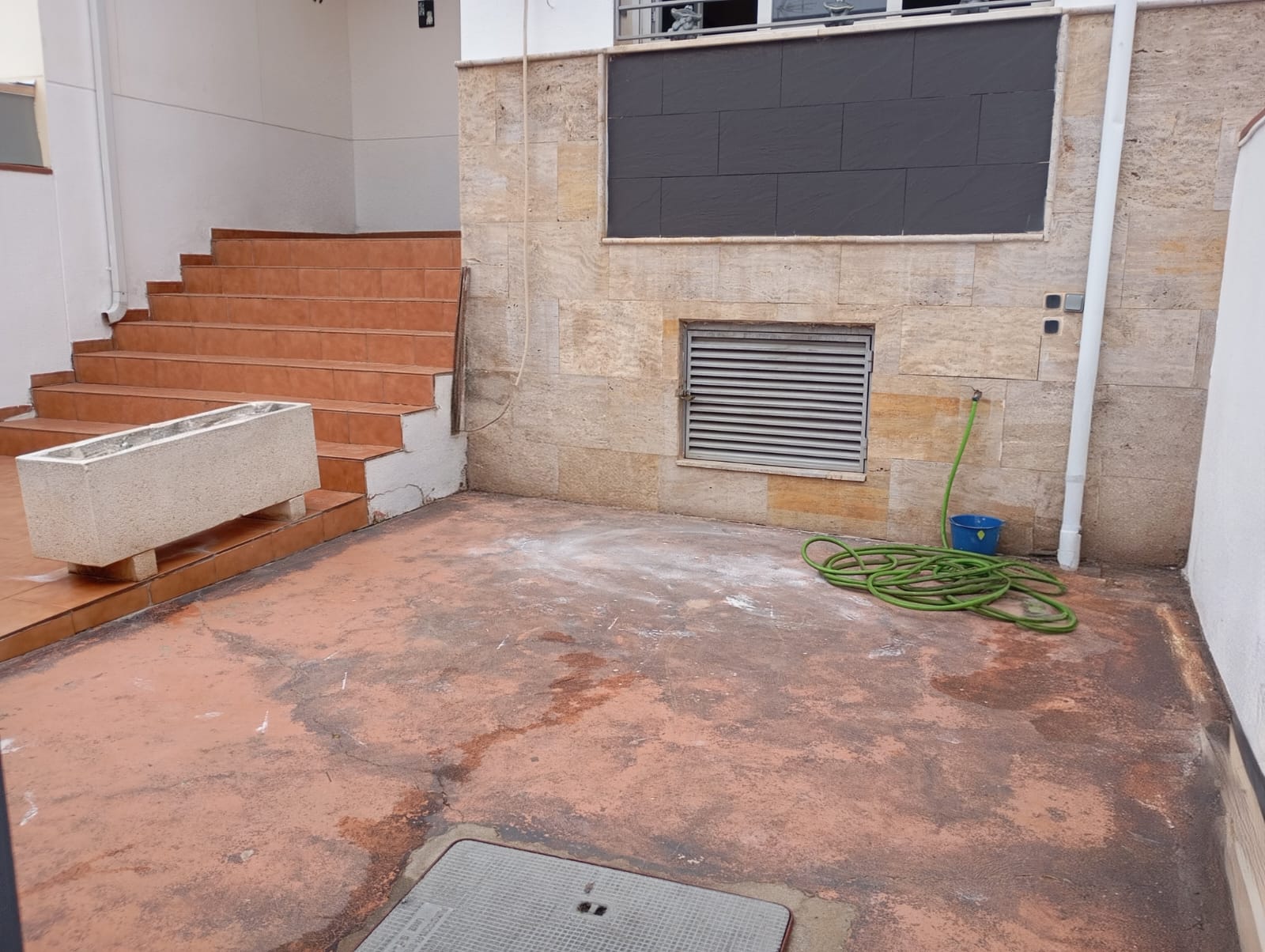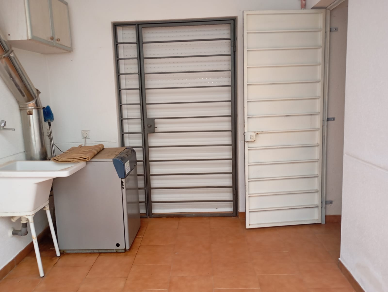 La casa de 89 m2 con suelo de terrazo y gres en baños y cocina, aire acondicionado y calefacción de gasoil con deposito subterráneo en el patio exterior y ventanas abatibles de aluminio climalit para garantizar el perfecto aislamiento térmico de la casa consta de un gran salón que da a este patio el cual tiene espacio para el aparcamiento de un coche, también tiene un aseo y la cocina que da al patio interior que está cubierto y en el que encontramos la caldera de la calefacción y un lavadero, todo esto en planta baja.