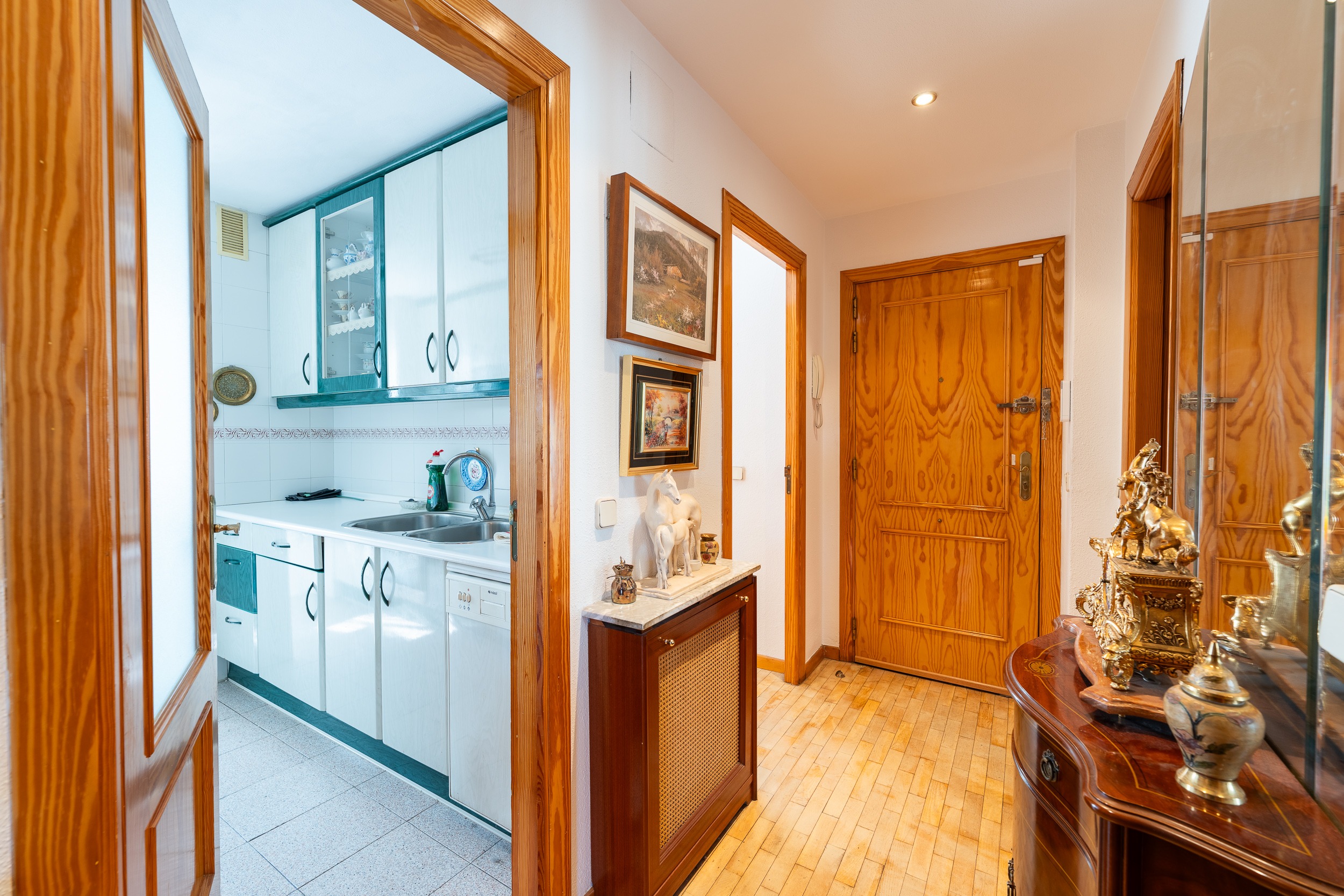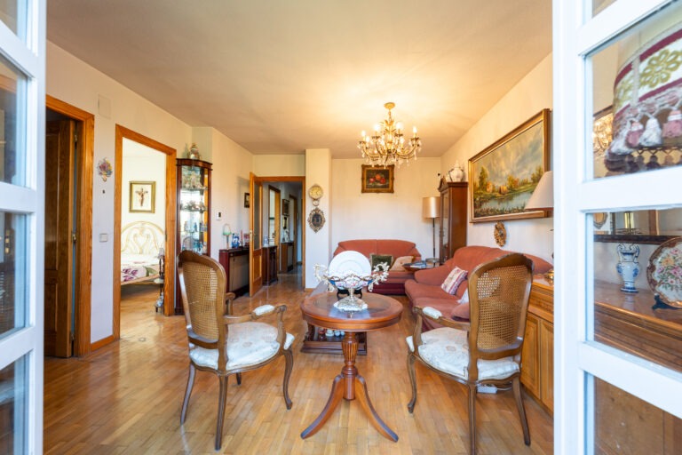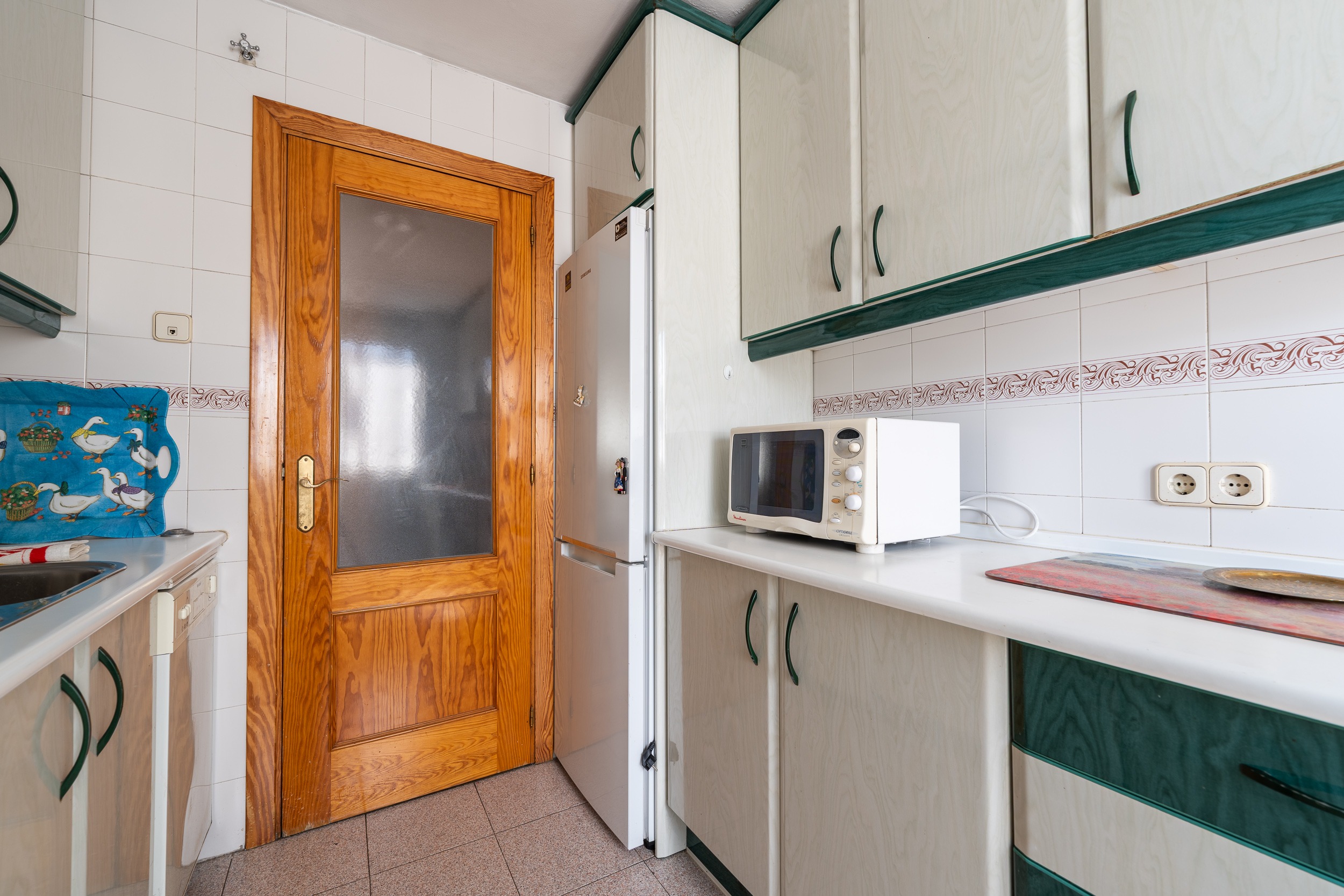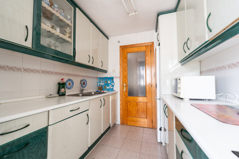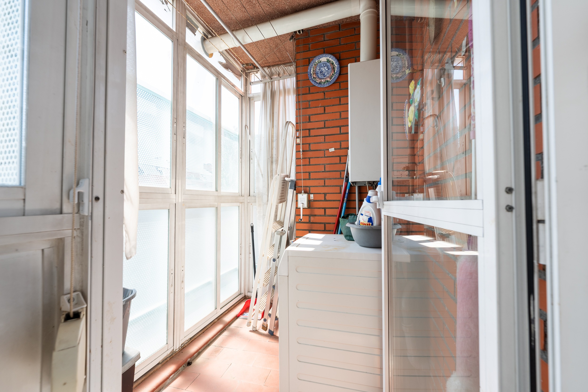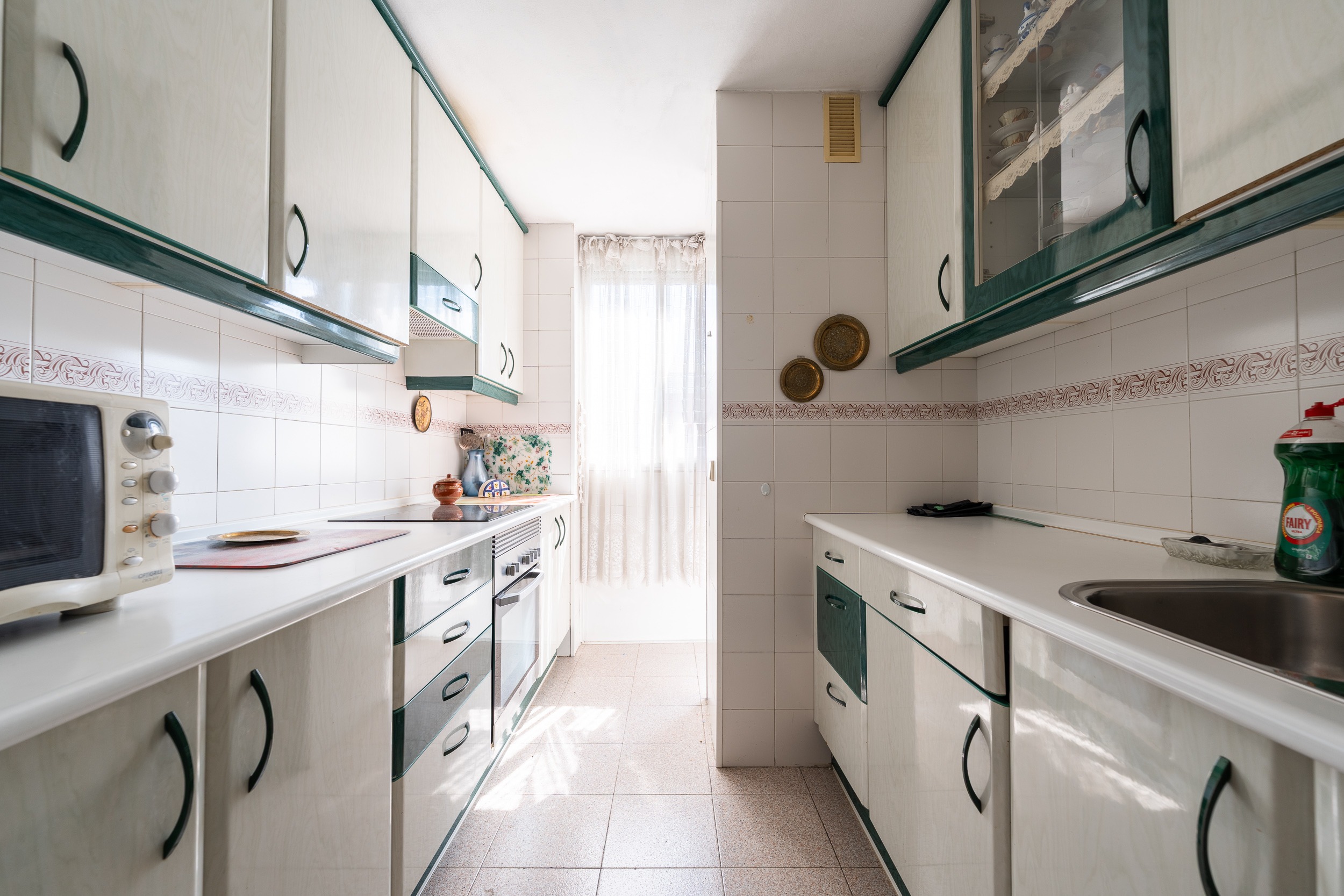 MASTERPISO vende piso en urbanización cerrada en el barrio de Aluche, Madrid, 3ª planta, ascensor, 100 m2 construidos, 85 m2 útiles, 3 habitaciones con armarios empotrados, dos baños, salón de paso con terraza y cocina con tendedero.