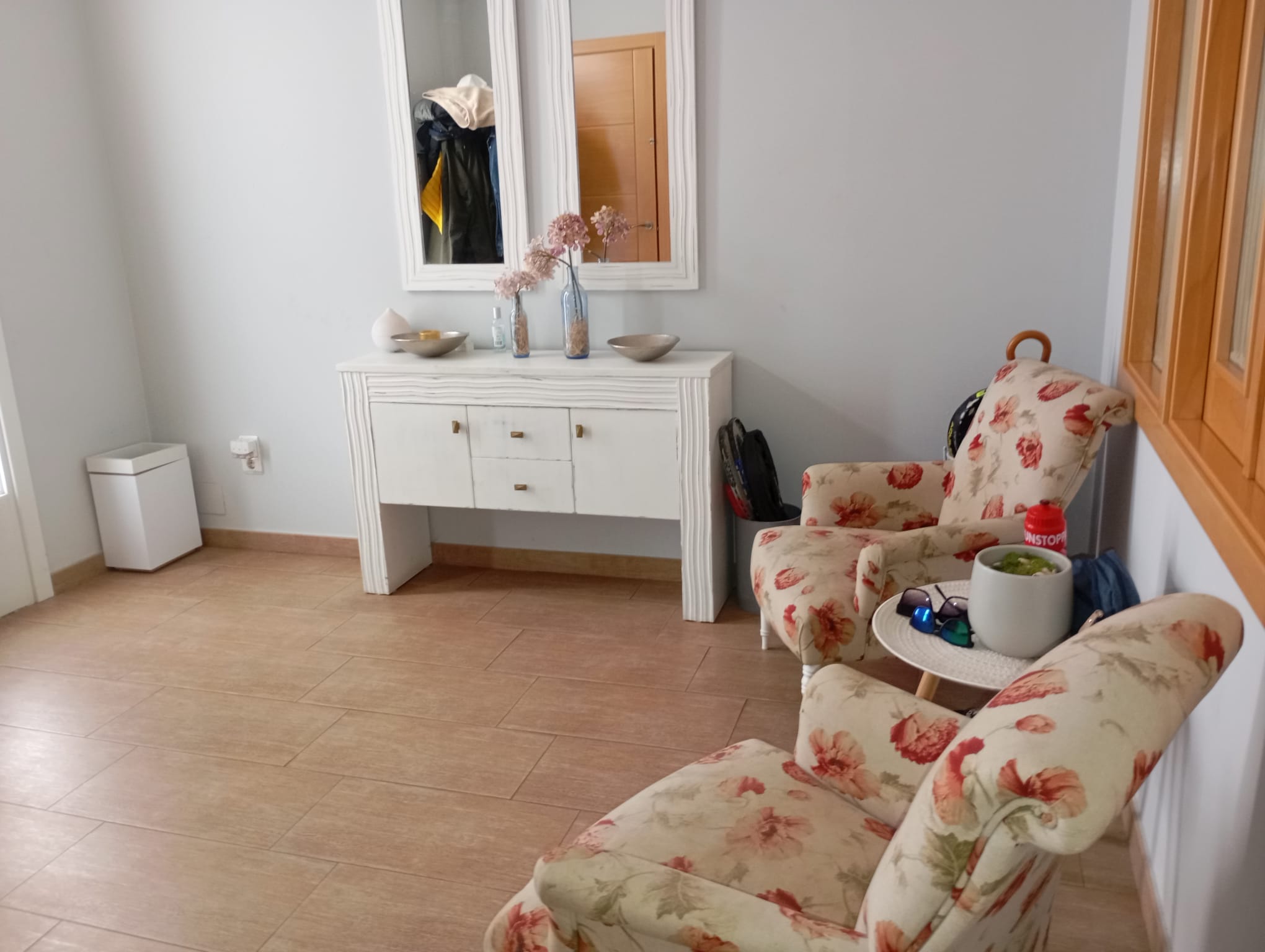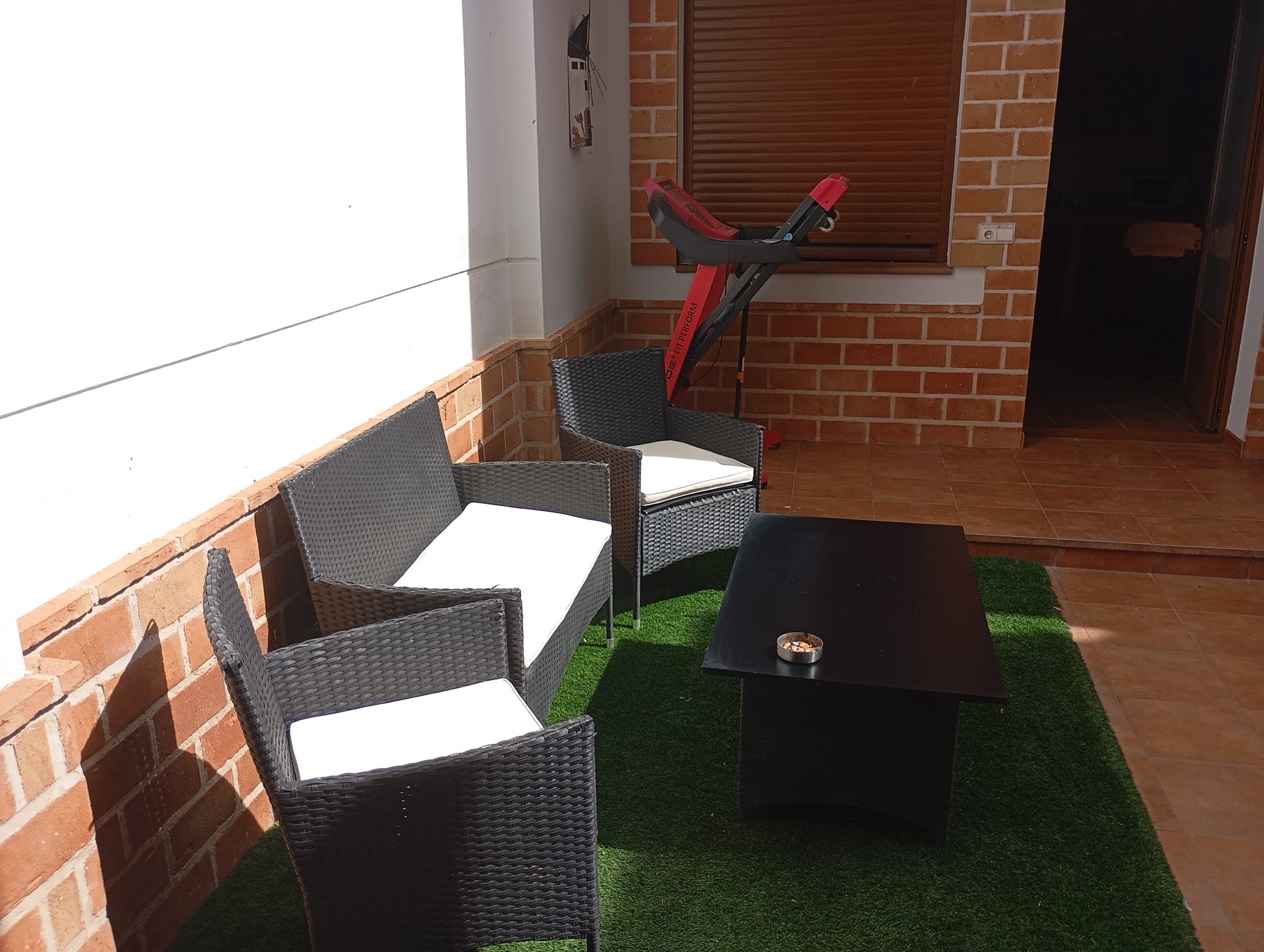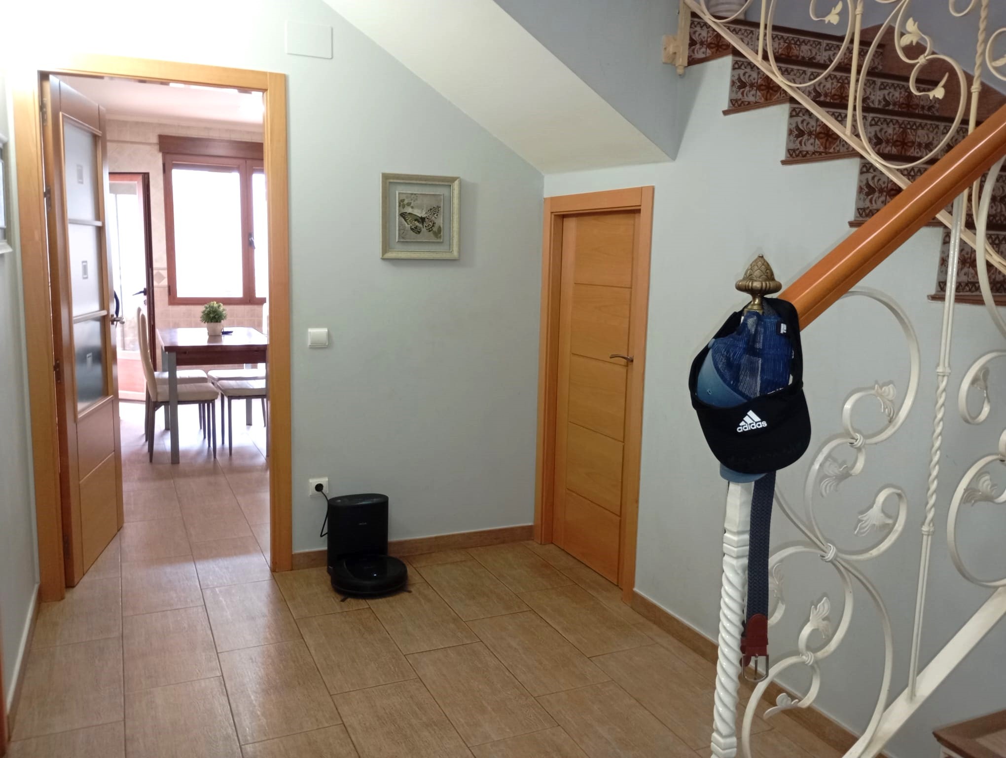 En la planta baja encontramos el patio delantero, un hall grande, garaje junto a laentrada, aseo, salón, cocina, patio trasero, aseo en este patio y la cocina campera.
