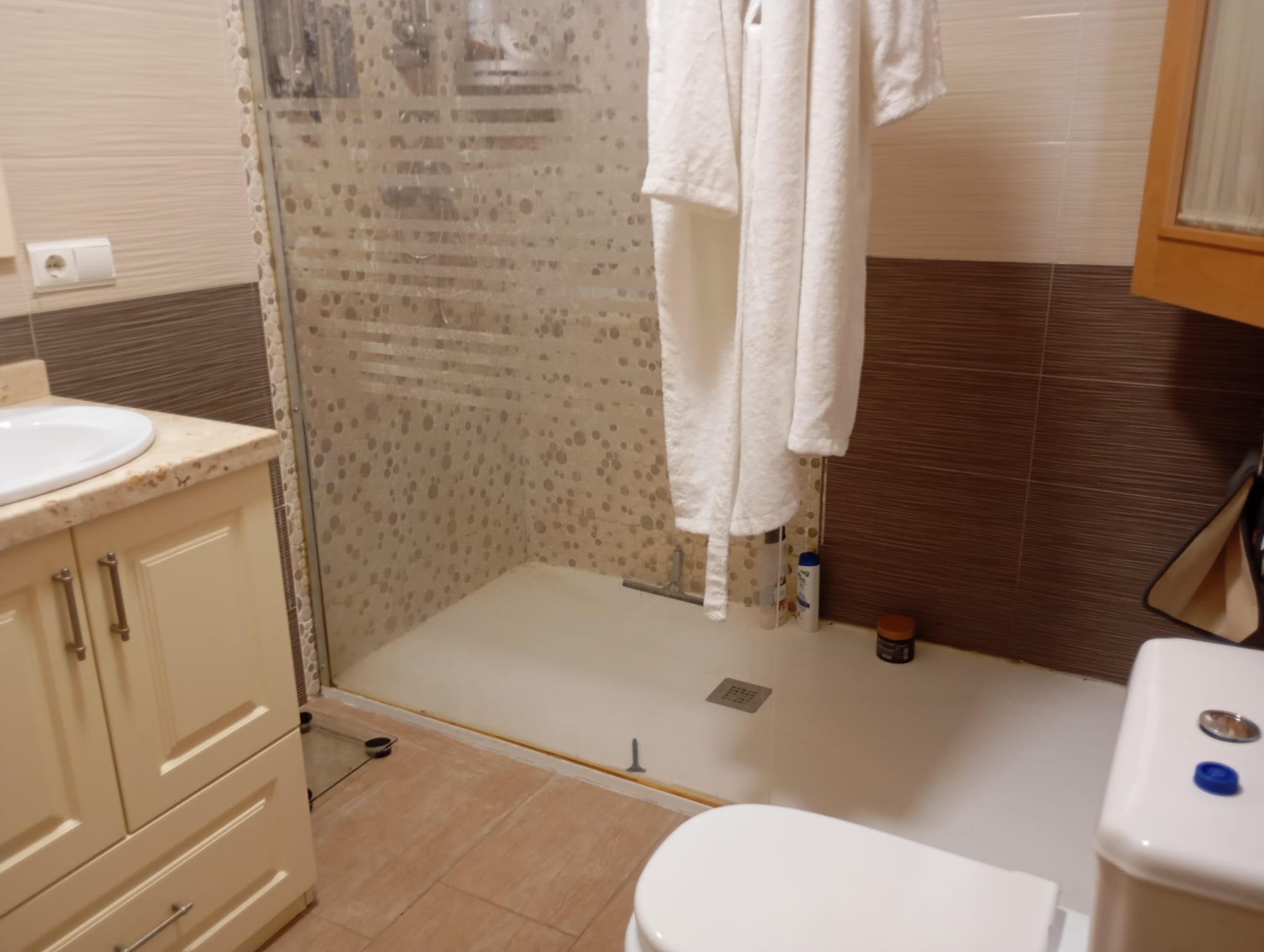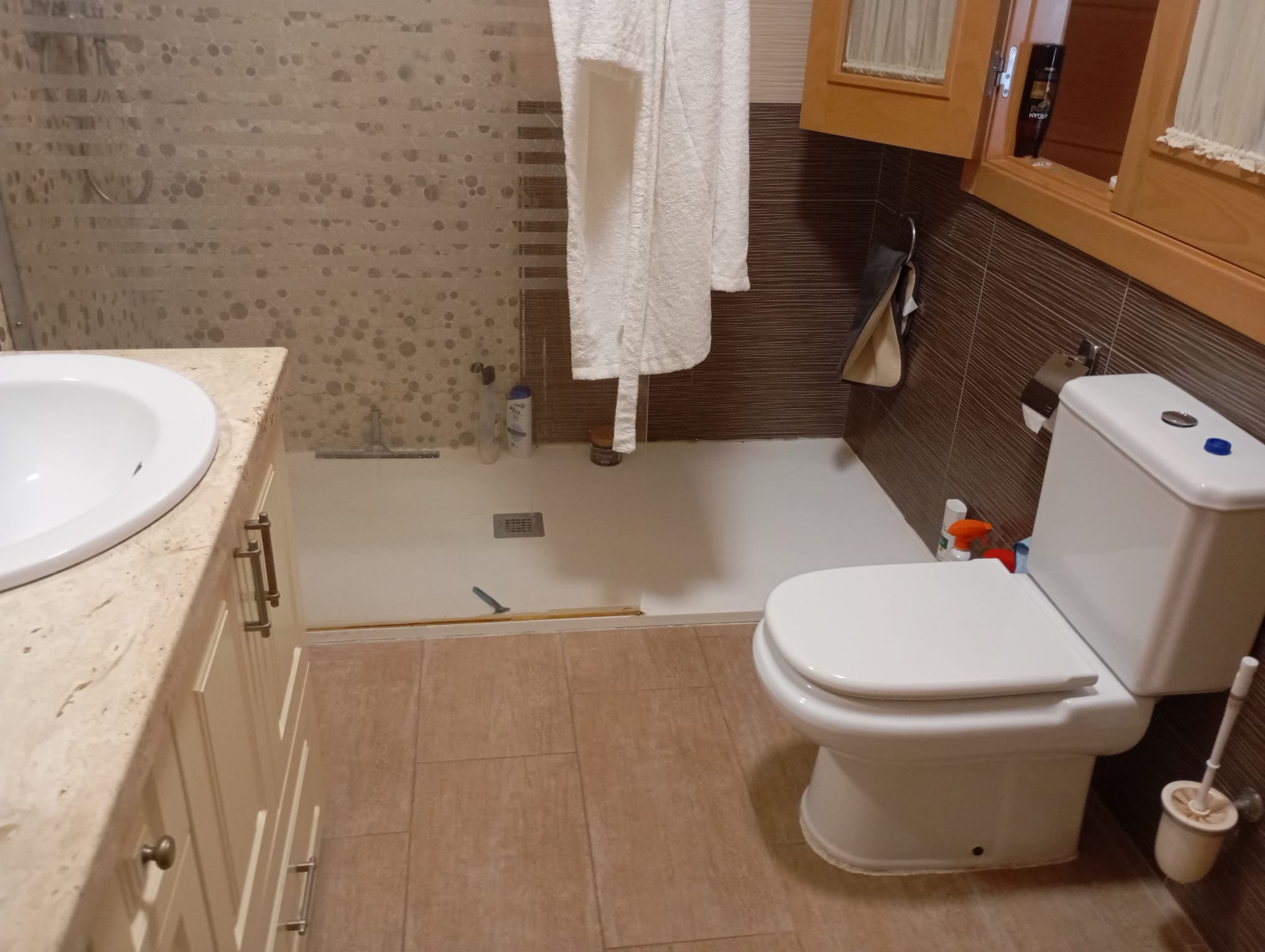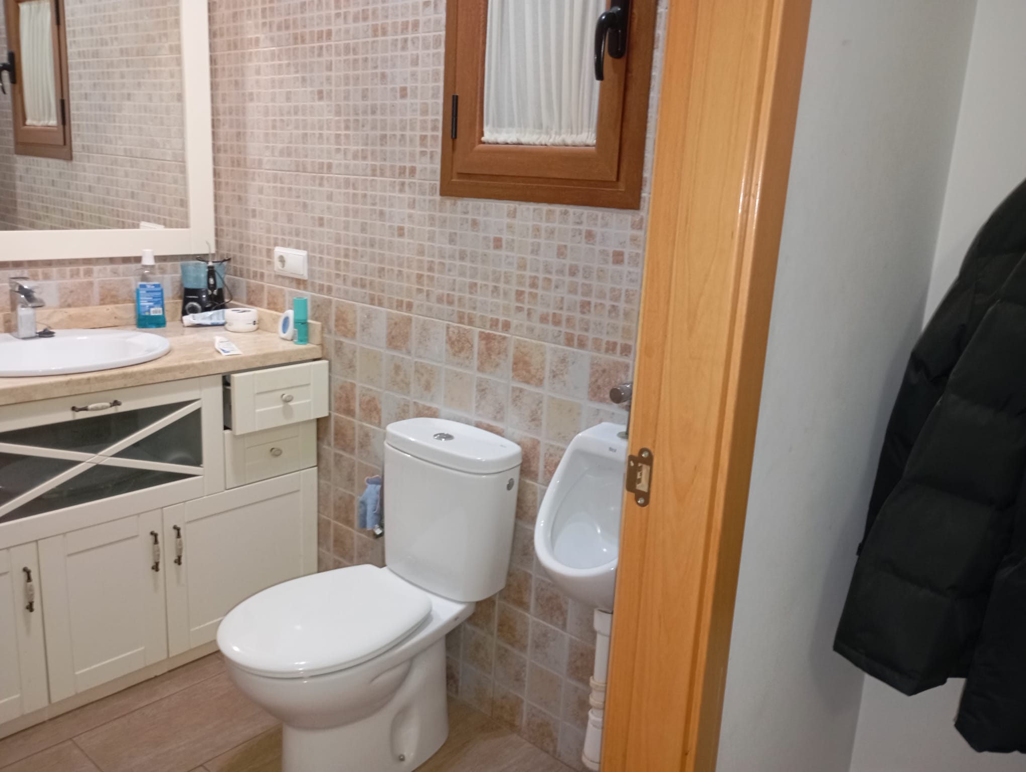 En la planta baja encontramos el patio delantero, un hall grande, garaje junto a laentrada, aseo, salón, cocina, patio trasero, aseo en este patio y la cocina campera.